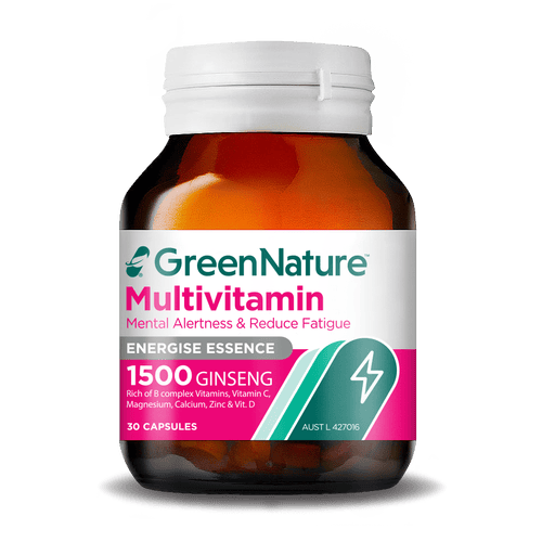 Harness the power of holistic vitality with GreenNature Multivitamin®, your essential ally in achieving and maintaining peak energy levels. Our expertly crafted formula brings together a full spectrum of vitamins and minerals, including a high-strength 1500 mg Panax ginseng, each component selected for its critical role in the body’s energy production processes. Experience the energizing synergy of a complete B-vitamin complex and active-form nutrients that support cellular ATP synthesis, reduce fatigue, and enhance metabolic efficiency.